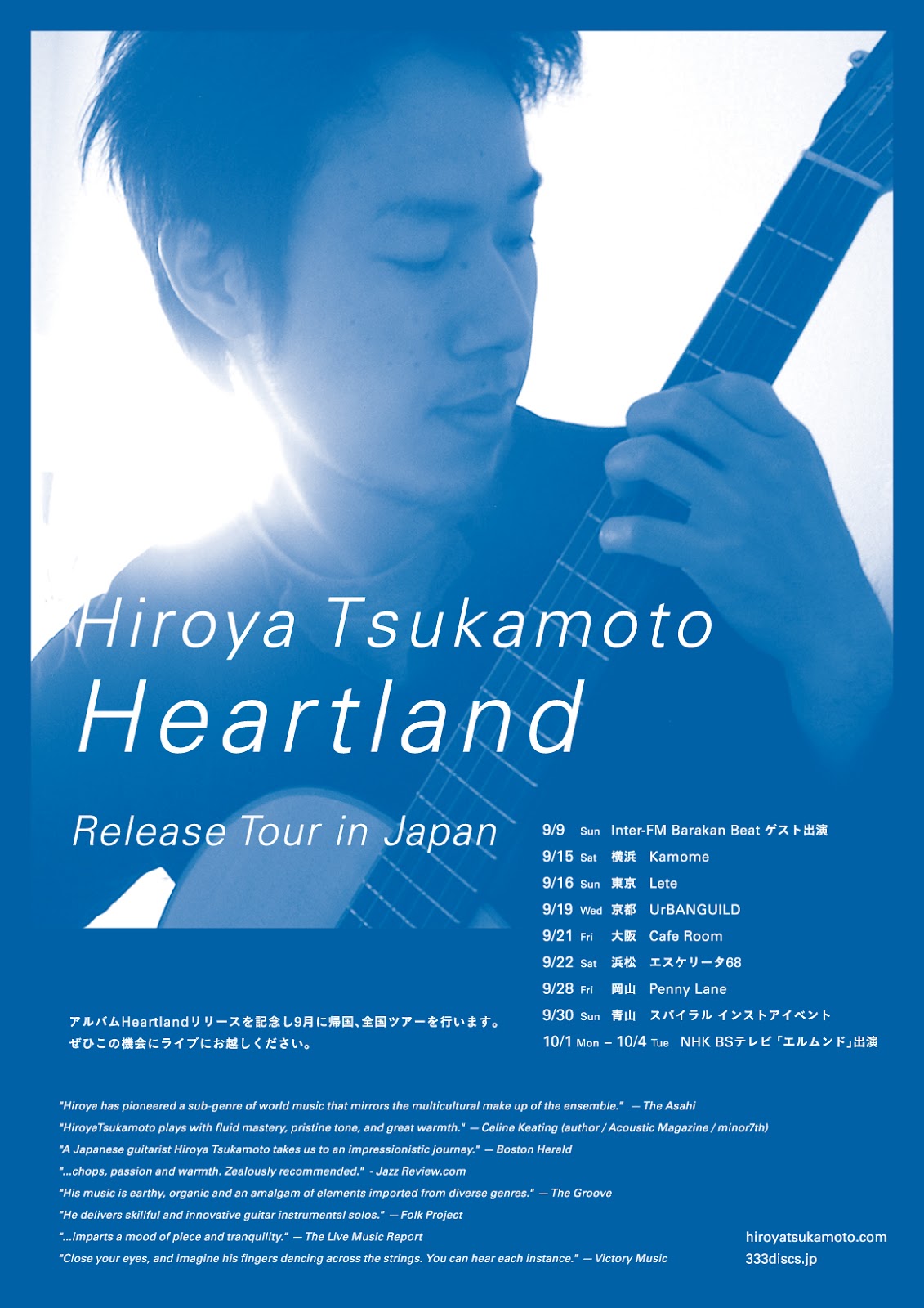 今回は、新しいアルバム『Heartland』のリリースツアーです。このアルバムは、自分のルーツ的な部分を見つめ直すことから曲作りを始め、数年をかけて完成した作品です。今までの自分のCDにはなかった音も入っていてきっと新鮮だと思いますので、ぜひ聴いてもらえたらと思います。