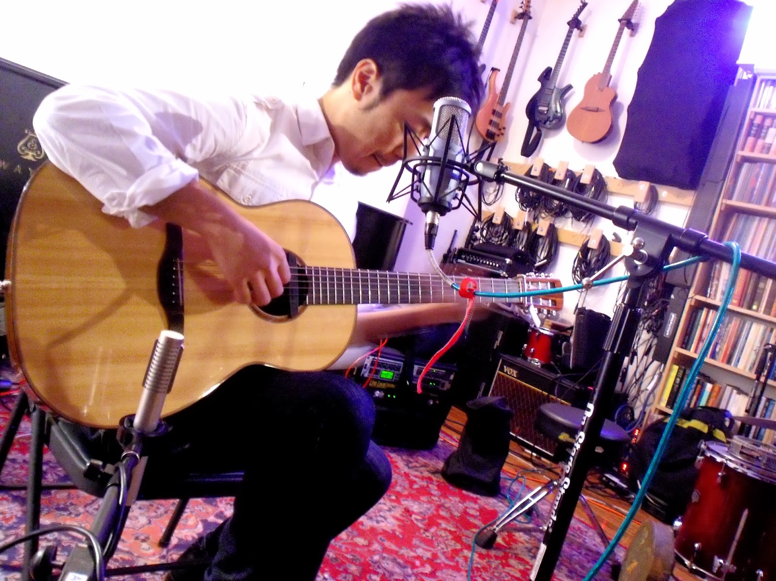 昨日のセットアップ。昨日はコンデンサマイクを使いました。音を拾い過ぎてフィードバックが怖いですがなかなかいいものです。